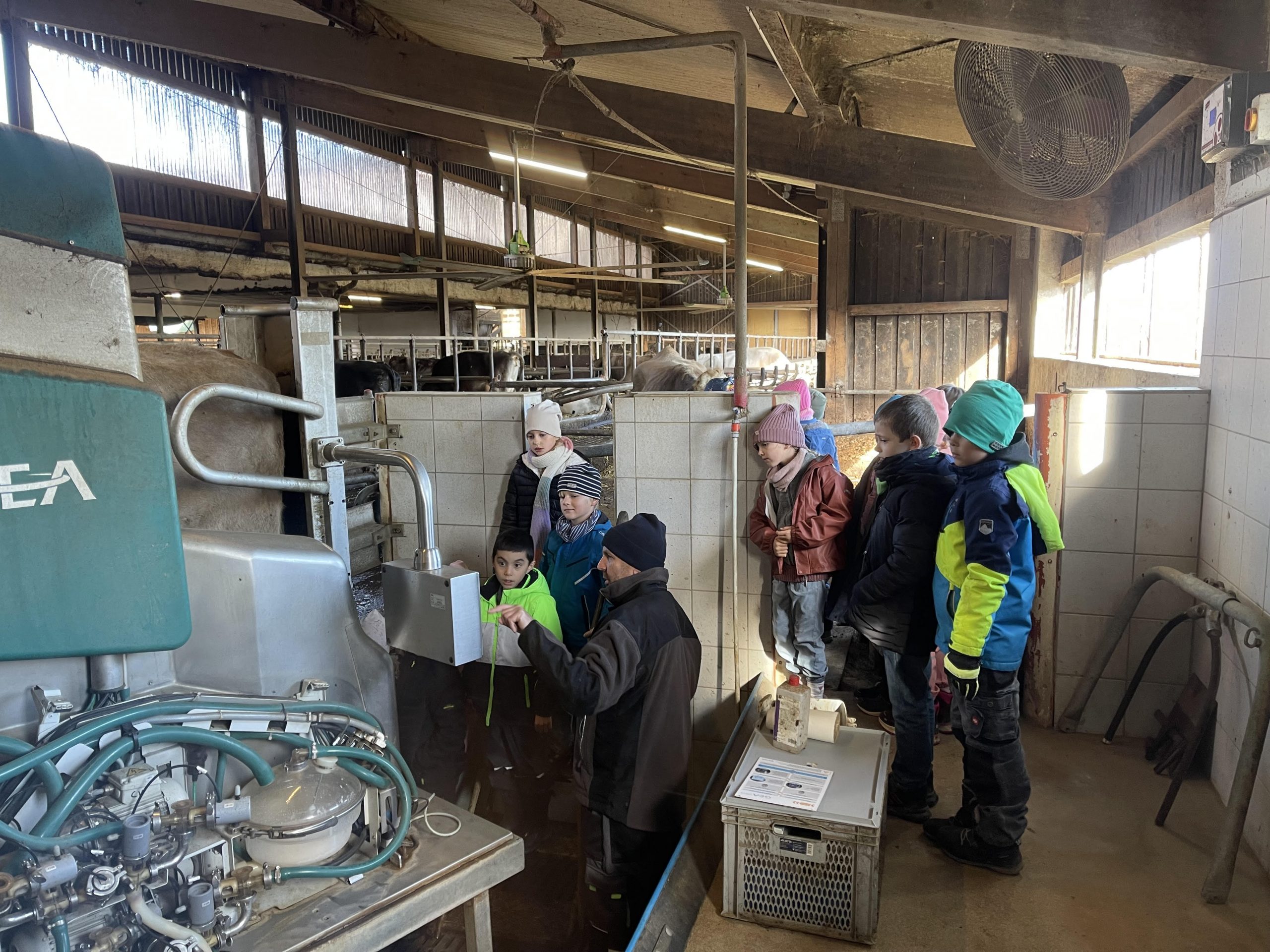 Wir konnten die etwas älteren Kälbchen in ihren Boxen streicheln und schauten und den Melkroboter genau an.